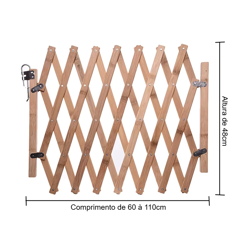 Precisa de uma solução eficiente para manter seu pet seguro em um espaço delimitado? O Portão Deslizante de Madeira Expansível para Cão é perfeito para proteger seu animal de estimação e manter determinadas áreas da sua casa seguras. Fabricado em madeira resistente e com design retrátil, ele se adapta a diferentes espaços, sendo ideal para escadas, corredores, portas e outros ambientes. Fácil de instalar e ajustar, proporciona segurança sem comprometer a estética da sua casa.